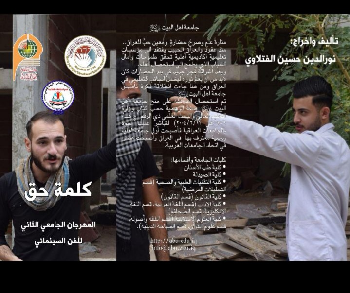 وذكر الاستاذ حيدر المعمار مدير النشاطات الطلابية في الجامعة بأن جامعة أهل البيت عليهم السلام تشارك بثلاثة افلام وقد اجتازت جميع الافلام الفحص والتدقيق ونزلت في جدول المسابقة.