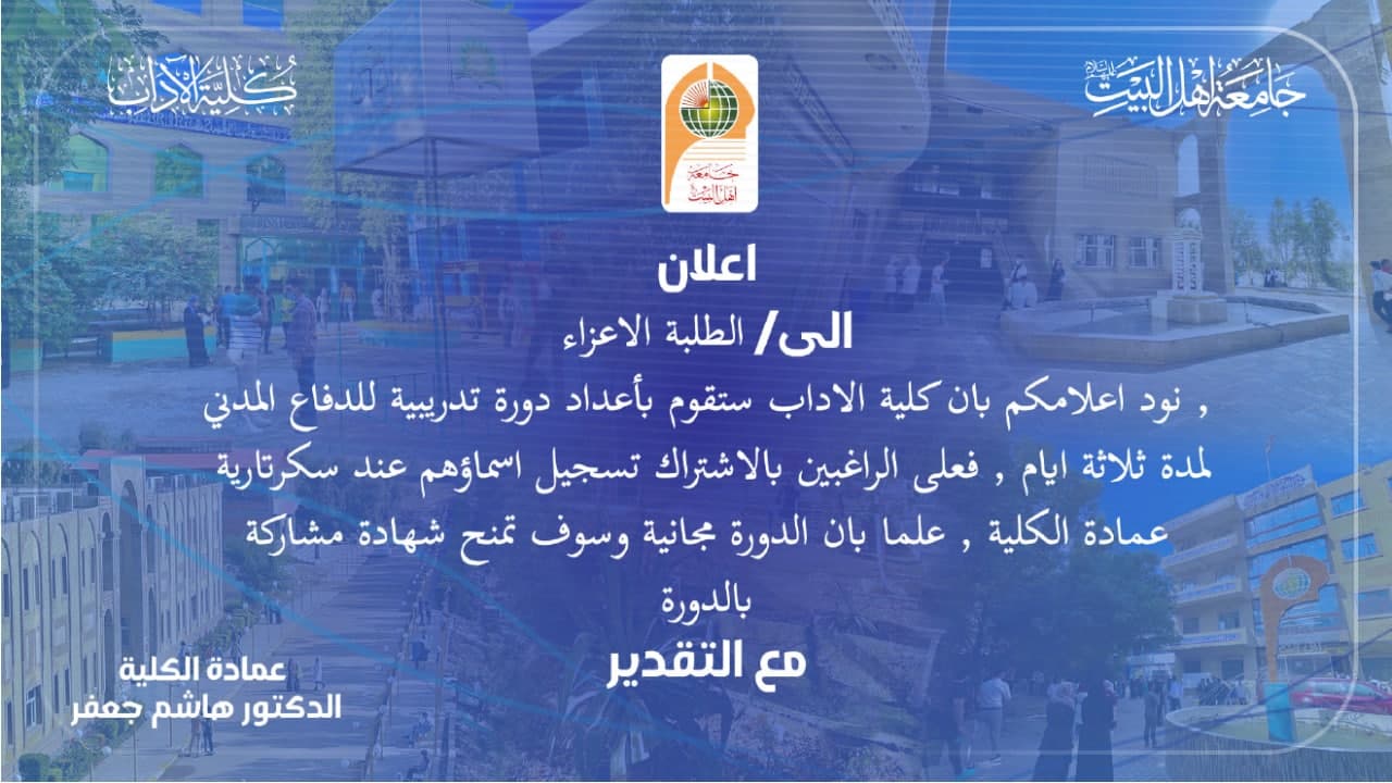 كلية الاداب ستقوم بأعداد دورة تدريبية للدفاع المدني