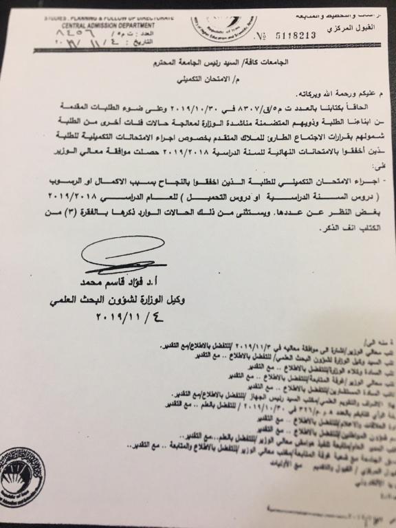 1. يحق لجميع الطلبة الراسبون والمكملون لآداء امتحان الدور الثالث التكميلي بغض النظر عن عدد المواد الراسبين فيها.