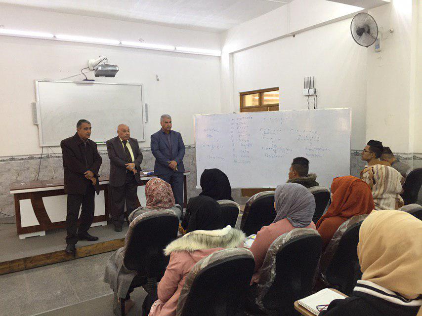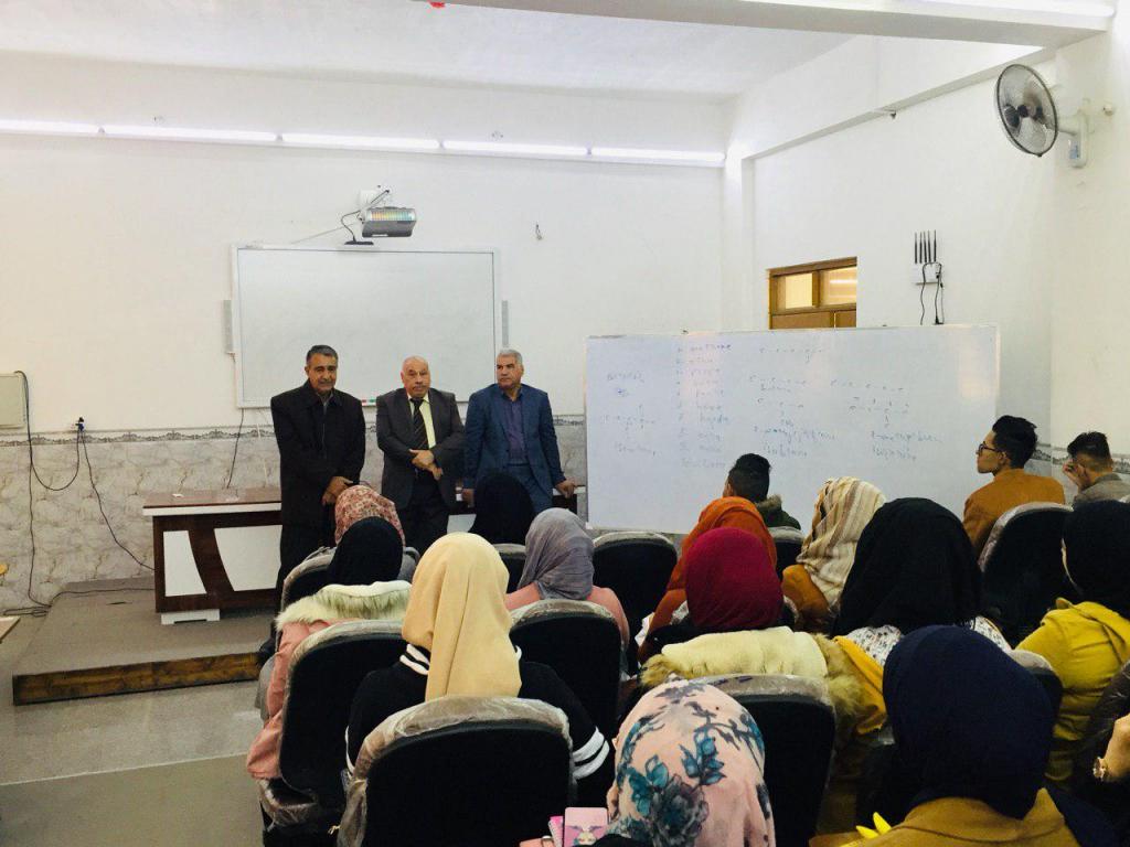 تفقد السيد مساعد رئيس الجامعة للشؤون العلمية الاستاذ الدكتور صاحب الاطرقجي برفقة السيد عميد الكلية الاستاذ المساعد الدكتور علي الرفاعي القاعات الدراسية للطلبة , حيث هنأ الطلبة ببداية العام الدراسي الجديد وحثهم على الالتزام بالدوام متمنيا لهم دوام الموفقية والنجاح .