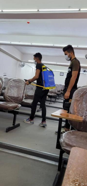 باشراف الاستاذ الدكتور علي سلطان الرفاعي تم تعفير وتعقيم القاعات الامتحانية في كلية طب الاسنان وتهيئتها لأداء امتحانات نصف السنة