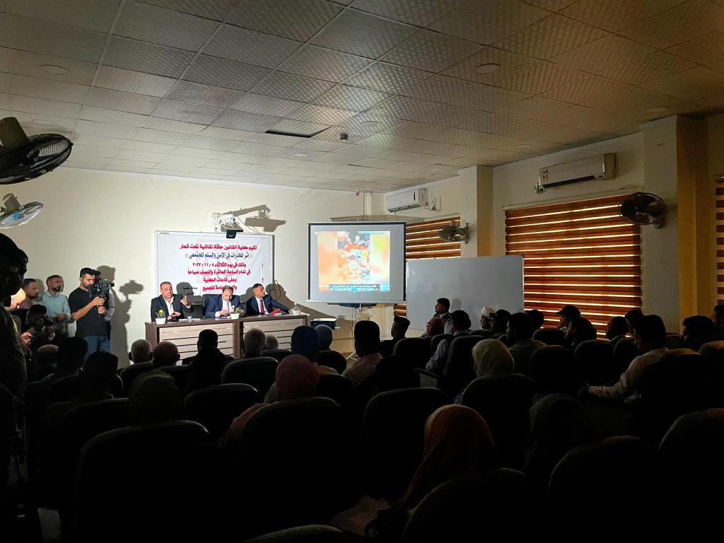 انطلاقاً من توجيهات وزارة التعليم العالي والبحث العلمي بضرورة عمل حلقات نقاشية علمية قامت كلية القانون جامعة أهل البيت عليهم السلام برعاية عميد كلية الدكتور حسن حنتوش رشيد الحسناوي المحترم حلقة نقاشية علمية تحت عنوان (اثر المخدرات على الامن والسلم المجتمعي) يوم الثلاثاء المصادف ٨/ ١١ على قاعة ابن حيان وكان المحاضر فيها السيد العميد الحقوقي جبار فضل سكر رئيس قسم مكافحة المخدرات والمؤثرات العقلية ورئيس قسم الجرائم العميد الحقوقي علاء حسين و العقيد احسان الاسدي مدير اعلام شرطة محافظة كربلاء وبادارة المعاون العلمي لكلية القانون الدكتور جلال حسن حنتوش.. إذ تناولت الحلقة موضوع الإدمان على المخدّرات وهو من أخطر ما يمكن أن يواجه مجتمعاتنا في العصر الحالي، ويُفقدنا الطّاقات الشّابّة الّتي يتوقّف عليها تطوير المجتمع وتقدّمه، فكلّنا مسؤولون من أهل، ومجتمع مدنيّ، ومؤسّسات تربويّة، ومؤسّسات رسميّة فلنكن واعين، ساهرين، حاضنين لشبابنا...وحضر الحلقة مؤسس الجامعة ورئيس الجامعة والمساعد الاداري وعميد الكلية وعدد من أساتذة الكلية والطلبة والضيوف الكرام.... وأن شاء الله المزيد من التألق والابداع والموفقية للجميع ...