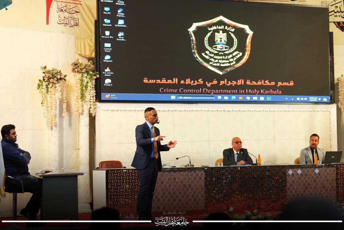 وكانت هذه الحلقة بالتعاون مع قيادة شرطة كربلاء قسم مكافحة الاجرام إذ تمت برعاية كريمة من رئيس جامعة بالاستاذ والدكتور النجدي و مساعد رئيس الجامعة الاستاذ الدكتور باسم العقابي بحضور غفير من قبل طلبتنا الاعزاء وقد تمت من خلال الحلقة طرح بعض الاليات القانونية لمكافحة الجريمة والظواهر السلبية الدخيلة على مجتمعنا فقد تفاعل الطلبة تفاعلاً رائعا مع مجريات الحلقة وفي ختام الحلقة قام السيد رئيس الجامعة بتكريم الاخوة المشاركين من منتسبي قيادة شرطة كربلاء قسم مكافحة الاجرام وان شاء الله ان تكون لنا حلقات اخرى تواكب التطور والاحداث الي تطرأ على مجتمعنا العراقي