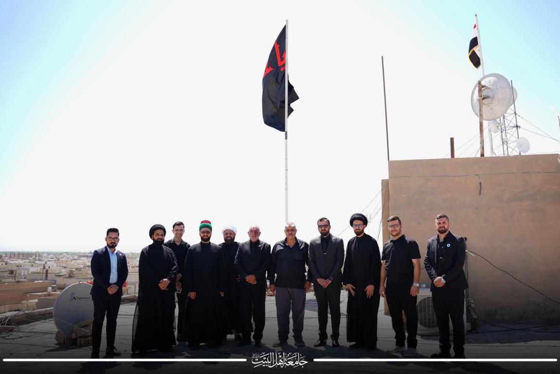 بعدها دعا السيد صادق القزويني مدير اعلام الجامعة الوفد الضيف بالتوجه والمباشرة برفع راية الحزن والعزاء في رحاب جامعة اهل البيت عليهم السلام