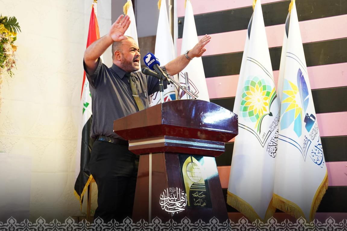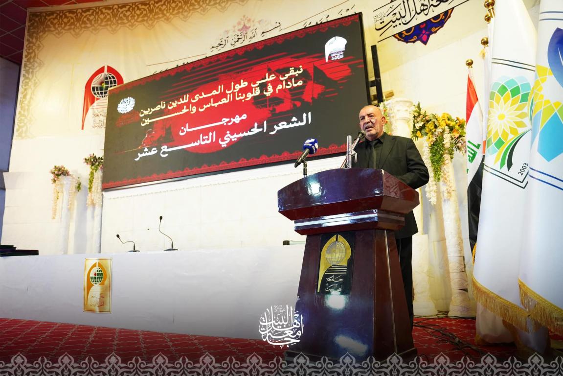 اقامت جامعة اهل البيت عليهم السلام مهرجانها الشعري التاسع عشر، عند الساعة التاسعه من صباح يوم الاثنين الموافق 12/8/2024 المصادف السابع من شهر صفر وعلى قاعة الاحتفالات الكبرى في الجامعة،،،وابتدا الحفل بالانصات الى تلاوة ايات بينات من الذكر الحكيم بعدها ردد الحاضرون النشيد الوطني العراقي ثم قرأ الحاضرون سورة المباركة الفاتحة على ارواح شهداء الحسين ع وشهداء العراق وشهداء فلسطين ،،ثم القى بعدها الدكتور محسن القزويني ،مؤسس الجامعة كلمة فيها الاسس والمباديء التي اعتمدها الأمام الحسن ع في صلحه مع معاوية وكيفية استمراره في نهج مقاومة الباطل والطغيان من خلال اتباعه لمنهج جده رسول الله ص وابيه،وامتثالا للاوامر الالهية التي تلقاها عن جده المصطفى ص، وكيف ان لكل امام ثوره اما عقائدية بحته كثورة الأمام الحسن ع واما جهادية قتاليه كثورة الأمام الحسين ع واما ثورة عقليه فكريه كثرة الأمام الصادق عليه السلام،،بعدها رحب الاستاذ صادق القزويني مدير الإعلام بالحاضرين من اساتذه وشعراء وطلبه وقدم الشعراء المساهمين في المهرجان ،،وتميزت القصائد بمواضيعها الحسينية أستذكر خلالها الشعراء واقعة الطف الاليمه والدروس والعبر المستنبطه عنها