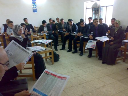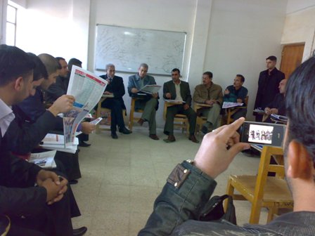 في لقاء موسع بين أساتذة طلبة قسم الصحافة تم بتوفيق من الله توزيع العدد التجريبي الأول من صحيفة لمسة الطلابية صباح هذا اليوم السبت الموافق 19/12/2009.