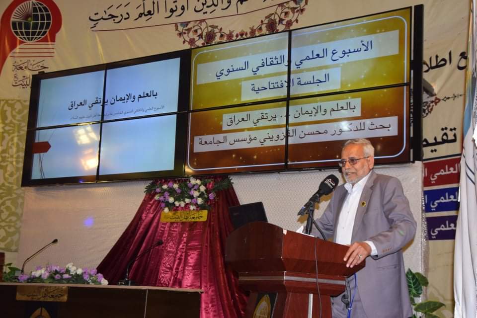 افتتحت جامعة اهل البيت عليهم السلام اسبوعها العلمي والثقافي الخامس عشر برعاية معالي وزير التعليم العالي و البحث العلمي الدكتور قصي السهيل حيث استهل حفل الافتتاح قراءة اي من الذكر الحكيم تلاها السيد علي القزويني بعدها الوقوف للاستماع الى النشيد الوطني العراقي و قراءة سورة المباركة الفاتحة على ارواح شهداء العراق الابرار ثم اعتلى المنصة راعي الحفل مستشار وزير التعليم العالي و البحث العلمي الاستاذ الدكتور موسى الموسوي بالنيابة عن الاستاذ الدكتور قصي السهيل الذي تكلم عن دور الجامعات الاهلية بصورة عامة و اشاد بدور جامعة اهل البيت عليهم السلام البارز خلال الاعوام الماضية بعد ذلك كانت الكلمة لرئيس جامعة أهل البيت عليهم السلام الدكتور عباس الحميري الذي رحب بالحضور افضل ترحيب وتقدم لهم بالشكر لتحملهم عناء الحضور للمشاركة في افتتاح الاسبوع العلمي و الثقافي الخامس عشر في جامعة أهل البيت عليهم السلام حيث حضر جمع غفير من رجال الدين و الشخصيات السياسية و القادة و عمداء و اساتذة من داخل و خارج الجامعة و كان هنالك عرض لبحث قدمه مؤسس جامعة أهل البيت عليهم السلام الدكتور محسن القزويني تحت عنوان (بالعلم و الايمان يرتقي العراق ) و قد تخلل الافتتاح عرض فلم وثائقي عن جامعة اهل البيت عليهم السلام و في الختام تم تكريم الحضور من قبل رئيس جامعة أهل البيت عليهم السلام فتقدم الدكتور الحميري بتكريم الدكتور الموسوي بدرع الجامعة و تم تكريم الحضور كافة بدرع الجامعة ثم انطلقت الفعاليات بكليات الجامعة