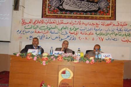 وتابع المؤتمرون منهاجهم بالاصغاء ومناقشة بحوث الطلبة التي ابتدأتها الطالبة دنيا غازي عن بحثها الموسوم تأثيرات الحرب النفسية في المتغيرات الاجتماعية والسياسية وتقدم الباحث أحمد كامل ببحث عنوانه الفضائيات العربية المتخصصة – دراسة تحليلية – وتابع الطالب لواء حسون مهدي الجلسة ببحثه تاريخ الصحافة الكربلائية منذ نشأتها عام 1968 ثم الطالب علي كاظم ببحثه الاذاعات المحلية في كربلاء (إذاعة كربلاء أنموذجا) وشارك الطالب فراس حسين الياسي ببحث عنوانه الدعاية العثمانية في العراق 1876- 1918 وقام الطالب حارث الخيون بعرض بحثه الموسوم الحيادية في وسائل الاعلام (مجلة الأسبوعية أنموذجا) هذا وقد أغنى الكثير من الطلبة مادة المؤتمر ببحوثهم القيمة حول الخطاب الاعلامي وقد تم عرض نتاجات جديدة في مجالي الاعلام المرئي والمسموع في الجلسة الثانية للمؤتمر بعد عرض تقارير مصورة لمجموعة من طلبة المراحل الدراسات الأولية لقسم الصحافة وفي الجلسة الثالثة اختتم المؤتمر بعرض جديد لعناوين مختلفة لالصحافة المقروءة ضمن العناوين التالية:
