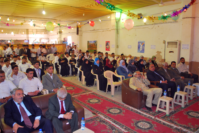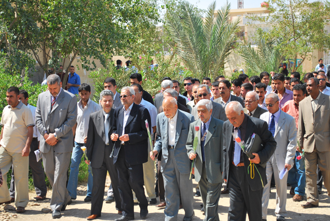 و قد أستهل الحفل بعرض مسرحي شامل بدأ من حدائق الجامعة تضّمن تشييعاً جنائزياً رمزياً لجثامين الراحلين حمل فيه الطلبة والأساتذة صور المبدعين المحتفى بهم و العلم العراقي و أزهاراً و أغصاناً خضراء تعبيراً عن مواصلة الحياة و المسرح أخرجه الفنان الشاب حمزة محمد فيحان. وعلى خشبة القاعة التي جرى فيها الاحتفال و ضعت قبوراً رمزية أحيطت بالصور و الشموع و الأوراد.. و بعد قراءة آياتٍ مباركات من القرآن الكريم و قراءة سورة الفاتحة، ألقيت عدة كلمات و خواطر و ذكريات و قصائد قدمها نخبة من المسرحيين الروائيين و الشعراء والمثقفين في المحافظة، شارك فيها القاص والناقد جاسم عاصي مدير دار ثقافة الأطفال في كربلاء و القاص عباس خلف رئيس اتحاد الأدباء و الكتاب/ فرع كربلاء و الفنان المسرحي مهدي هندو رئيس جماعة (مسرحيون) و المخرج علي الشيباني و الدكتور بدر ناصر حسين و الشاعر هادي الربيعي، كما ألقى الدكتور محمد عبد فيحان رئيس قسم الصحافة كلمة تحدث فيها عن معنى غياب هؤلاء المسرحيين المبدعين عن ساحة العطاء و الفكر و الثقافة المسرحية في البلاد، و ضرورة أن يتم الاهتمام بأعلام المسرح و رعايتهم و تكريمهم من قبل الحكومة ليعودوا إلى وطنهم و ينعموا بخيرات و محبة العراق العزيز..