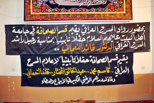 بحضور عدد كبير من أدباء و فناني محافظة كربلاء المقدسة أقام قسم الصحافة بكلية الآداب في جامعة أهل البيت حفلاً تأبينياً لمناسبة رحيل أعلام المسرح العراق وفي مقدمتهم الفنانون المسرحيون المبدعون الدكتور قائد النعماني و الكاتب و المخرج قاسم محمد و الممثل عبد الخالق المختار و قبلهم المخرج عوني كرومي و الفنان كريم جثير و غيرهم ممن قدّموا العشرات من الأعمال المسرحية و السينمائية و التلفزيونية التي بقية عالقة في أذهان الجماهير.