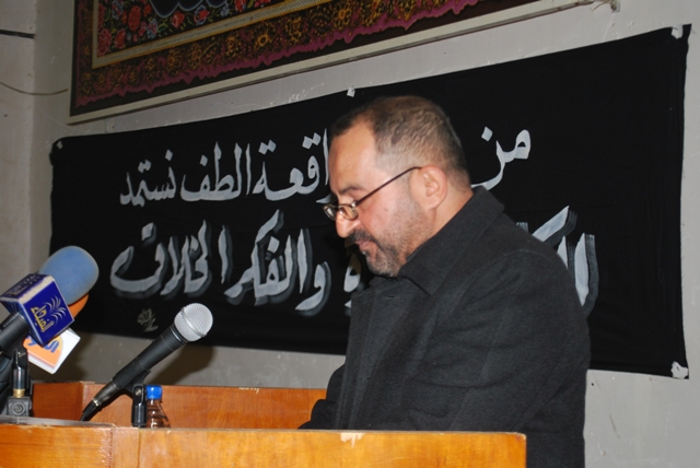وقال الأساذ الدكتور عبود جودي الحلي رئيس جامعة أهل البيت عليهم السلام في كلمة ألقاها في المهرجان أن واقعة الطف مثلت ارادتين إرادة الخير و العزة والأخلاق الحميدة التي جسدها الإمام الحسين عليه السلام وإرادة الخسة والذلة التي تمثلت بمجموعة النفوس الضعيفة التي تجمعت لقتل أبي عبد الله الحسين عليه السلام...