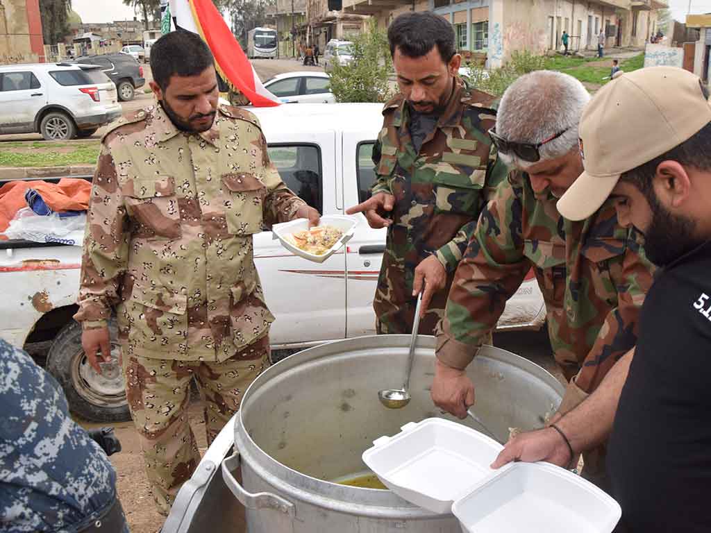 انطلق جمع من اساتذة و طلبة جامعة اهل البيت عليهم السلام  نحو الجانب الايمن من مدينة الموصل لتقديم الدعم اللوجستي الى الحشد الشعبي و المساعدات الى مخيمات النازحين و رافق الوفد السيد مؤسس الجامعة الدكتور محسن القزويني و السيد مدير قسم النشاطات الطلابية في الجامعة الاستاذ حيدر المعمار و السيد معاون عميد كلية الصيدلة الدكتور صاحب الخباز و قد تضمنت هذه الرحلة زيارة الى القطاعات الموجودة على طريق الموصل و تقديم الدعم المادي و المعنوي لهم و توجه الوفد بعد ذلك الى مخيمات النازحين الموجودة في منطقة حمام العليل و قد قدم المساعدات اليهم و شارك الطلبة و الاساتذة في توزيعها و ساهم الطلبة في  رفع معنويات الاطفال الموجودين في تلك المخيمات و كان لهم الدور الكبير  في رسم البسمة على وجوههم و نوه طالب المرحلة الاولى في قسم الصحافة  الذي قدم فعاليات خاصة الى اطفال النازحين الموجودين في المخيمات حسين الاسدي قائلا : امام الانسانية تسقط كل الصفات والرسميات لحظة الم حاولت ان ابعث فيها ابتسامة  لاطفال النازحين وعوائلهم  فلعبنا معا .. وتعالت الاصوات  كلنا العراق كلنا الحشد الشعبي كلنا جامعة اهل البيت عليهم السلام  هذا و ابدى مقاتلي الحشد الشعبي  و القوات الامنية من كافة الفصائل الموجوة اعجابهم الكبير بطلبة و اساتذة  الجامعة لما يحملونه من شجاعة و تقدموا لهم بالشكر و الامتنان عى زيارتهم و على كل ما قدموه