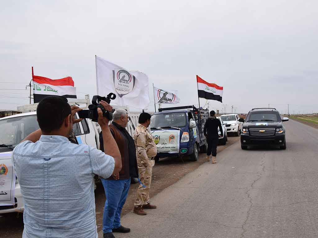 اساتذة و طلبة جامعة اهل البيت عليهم السلام يتوجهون الى الموصل لتقديم الدعم اللوجستي للحشد الشعبي و المساعدات لمخيمات النازحين