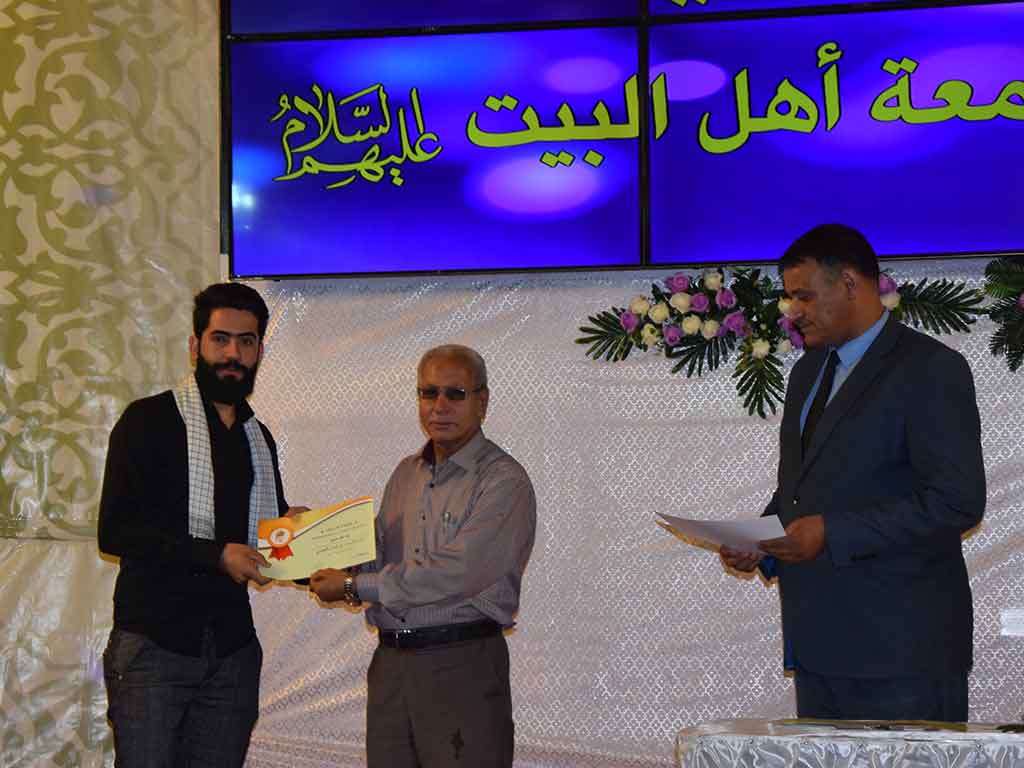 وفي ختام المهرجان وزع رئيس الجامعة الدكتور صادق الموسوي شهادات تقديرية للطلبة الذين قدموا نشاطات متميزة هذا العام، كما وزع الدكتور باقر الزجاجي هدايا تقديرية على الطلبة المتميزين، وعلى الصعيد نفسه قدمت الدكتورة جليلة شهادات تقديرية لعدد من الطلبة لتميزهم وادائهم واجباتهم المكلفين بها.