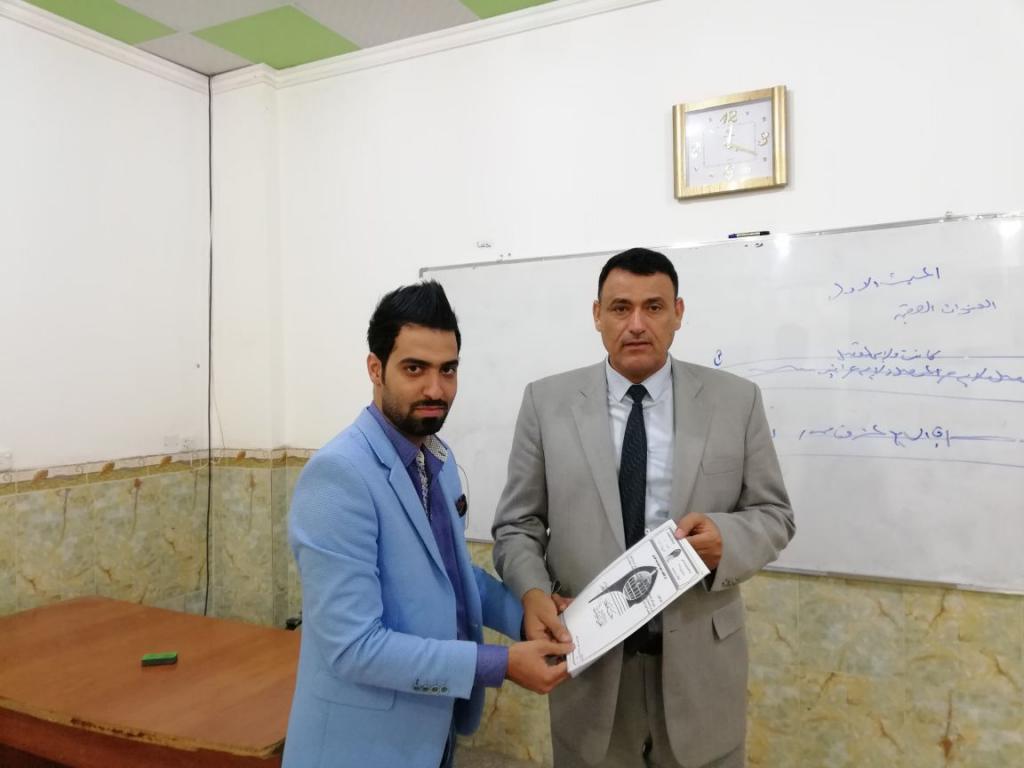 تكريم مراسل صحيفة اصوات الالكترونية احد طلبة قسم الصحافة في جامعة اهل البيت عليهم السلام