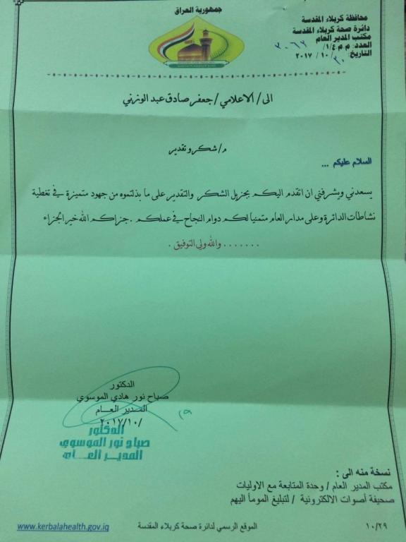 صندوق بريد: 486 كربلاء المقدسة.