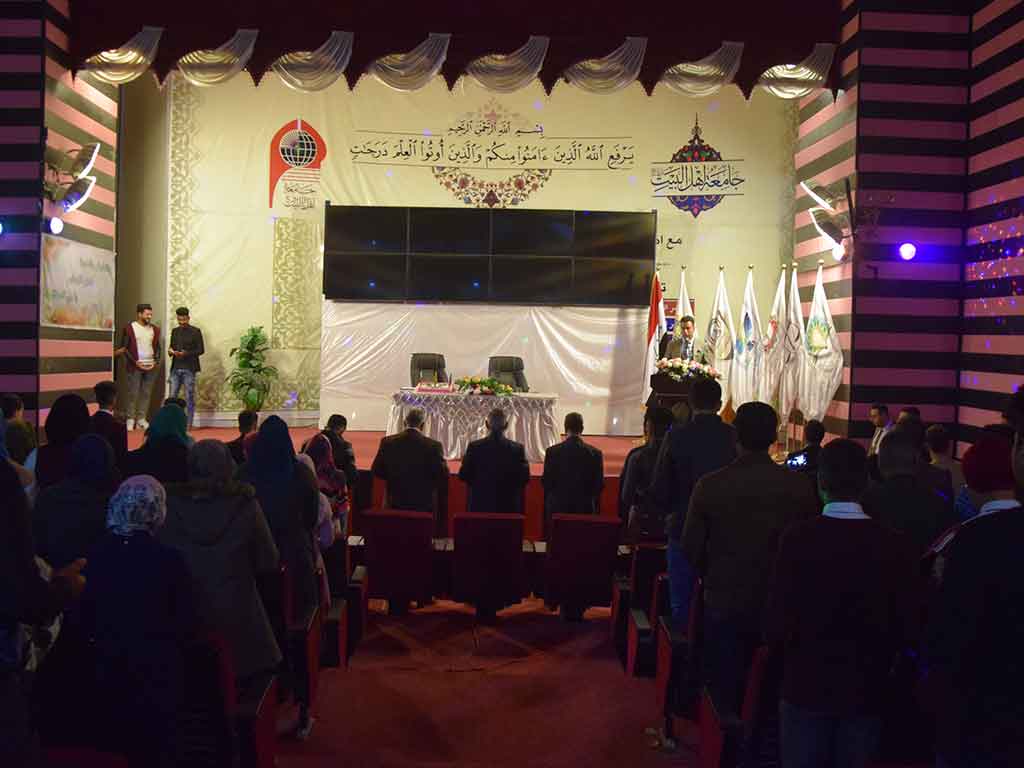 اقام طلبة كلية القانون حفل التعارف الخاص بطلبة المرحلة الاولى بحضور عميد الكلية الدكتور حسن حنتوش ومعاون العميد وعدد من اساتذة الكلية و طلبتها حيث بدء الحفل بقراءة اي من الذكر الحكيم وتلاه الوقوف للاستماع للنشيد الوطني العراقي وقراءة سورة الفاتحة على ارواح الشهداء الابرار ثم اعتلى المنصة عميد الكلية ليرحب بطلبة المرحلة الاولى ويبارك لهم القبول في جامعة اهل البيت عليهم السلام التي تمتاز برصانتها العلمية في القانون وبين لهم ان الجامعة احرزت العديد من الانجازات العلمية على مستوى التعليم في العراق هذا و تمنى لهم النجاح و الموفقية في حياتهم الدراسية في الجامعة ثم بدأت فقرات الحفل التي كانت من تنظيم طلبة المرحلة الاولى
