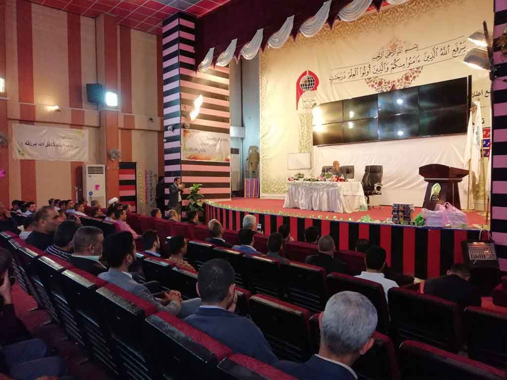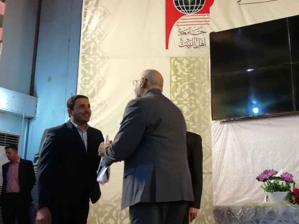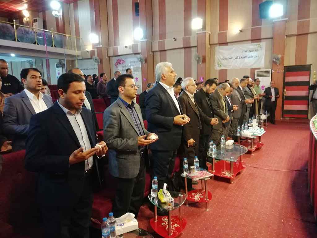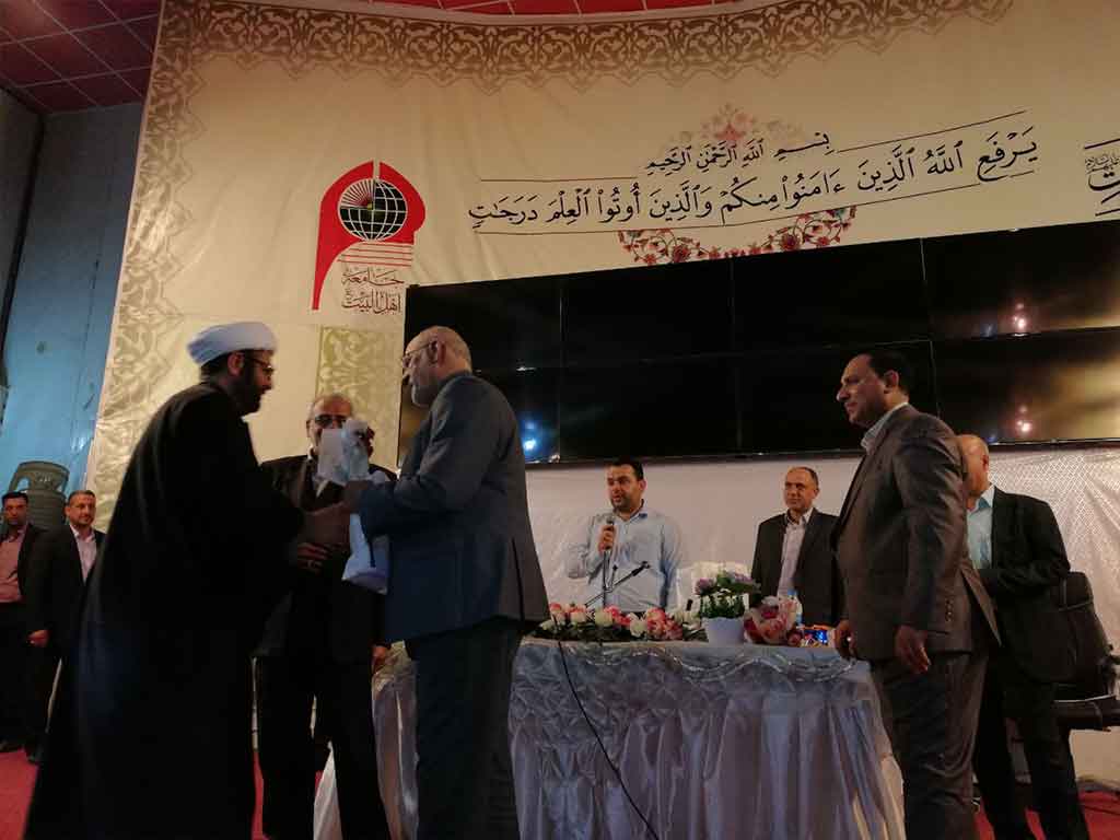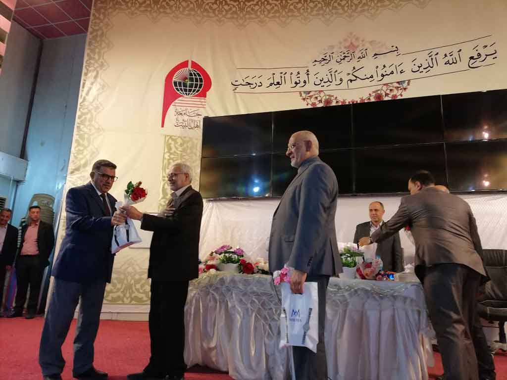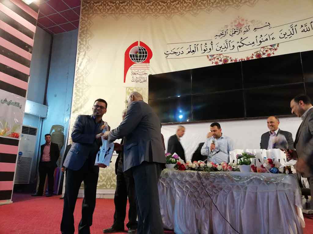 احتفلت كلية العلوم الاسلامية قسم السياحة الدينية بعيد المعلم وحضر الاحتفالية مؤسس جامعة اهل البيت عليهم السلام الدكتور محسن القزويني وعميد كلية العلوم الاسلامية الدكتور عبد الحميد النجدي ومعاون العميد وعدد من التدريسين في القسم وعدد خفير من الطلبة وافتتح الاحتفال بقراءة اي من الذكر الحكيم والوقوف لقراءة سورة المباركة الفاتحة على ارواح شهداء الوطن من القوات الأمنية والحشد الشعبي والقى عميد الكلية ومؤسس الجامعة كلمة بحق المعلم و الاستاذ الجامعي و دوره البارز في بناء المجتمع و في الختام وزع الدكتور محسن القزويني الهدايا على الاساتذة بالنيابة عن الطلبة و كرم عميد الكلية مؤسس الجامعة بهذه المناسبة و تقدم له بالشكر و العرفان على الدعم و التعاون المستمر المقدم من قبل الهيأة المؤسسة لانجاح المسيرة العلمية في الجامعة