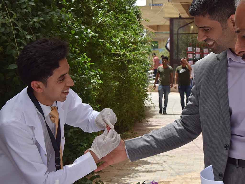شاركت كلية الصيدلة في جامعة اهل البيت عليهم السلام في فعاليات افتتاح مهرجان الاسبوع العلمي الثقافي الرابع عشر من خلال اقامت عيادة طبية طلابية تحت اشراف عميد كلية الصيدلة الدكتور علاء عبد العباس الجنابي حيث قام طلبة الكلية بتقديم الخدمات الصحية الى الحضور و الطلبة و تضمنت العيادة قياس ضغط الدم و قياس السكر و قياس الوزن و الطول بالاضافة الى تحليل معرفة فصيلة الدم و كان الطلبة يقدمون اوراق الى المراجعين في العيادة تتضمن كافة المعلومات التي تخصه بعد الفحص