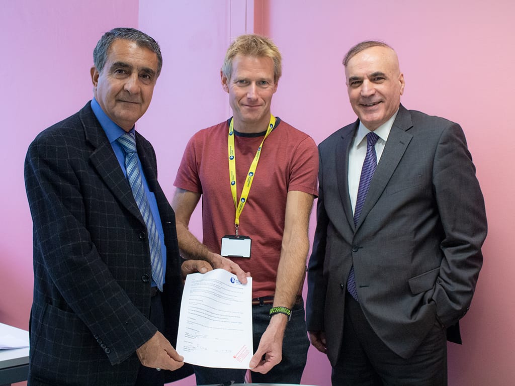 وقعت جامعة اهل البيت عليهم السلام مذكرة تفاهم مع الدار العالمية في لندن حيث وقعها الطرف البريطاني الرئيس التنفيذي للدار العالمية جوزيف لوبي مع رئيس جامعة اهل البيت عليهم السلام الاستاذ الدكتور صاحب الاطرقجي وتضمن الاتفاق تنظيم دورات تدريبية في لندن للكادر التدريسي في قسم اللغة الانكليزية و الاقسام الاخرى في الجامعة للنهوض بمستوى الطلبة في اللغة الانكليزية وسوف يقوم وفد من الدار العالمية في المملكة المتحدة بزيارة الجامعة وتم الاتفاق على اقامة دورات في جامعة اهل البيت عليهم السلام بأستقدام محاضرين من الدار العالمية لتقليل النفقات للطلبة و تحاشي الصعوبات الأخرى