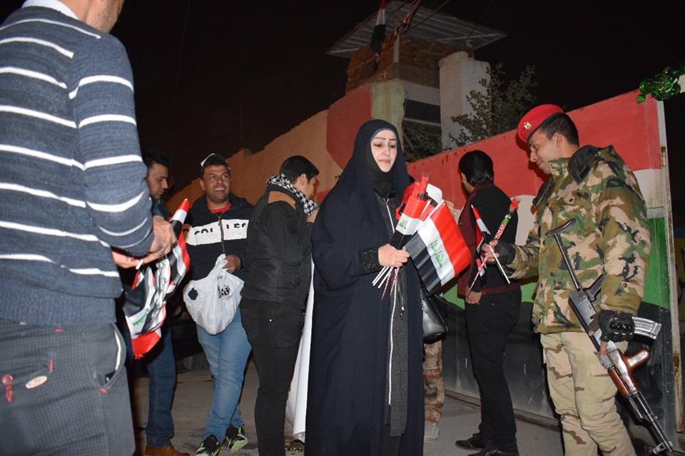 وتوجة الطلبة إلى قيادة عمليات كربلاء اذ كان في استقبالهم الفريق الركن قيس المحمداوي قائد عمليات الفرات الاوسط والدكتور غالب الدعمي رئيس قسم الصحافة والعميد محمد الشمري قائد الحركات في قيادة عمليات كربلاء وعدداً من الضباط، وقد وشح الطلبة قائد العلميات والضباط المتواجدون في مقر العمليات بالعلم العراقي كما نثروا الحلوى على رؤوس الجنود الاشاوس.