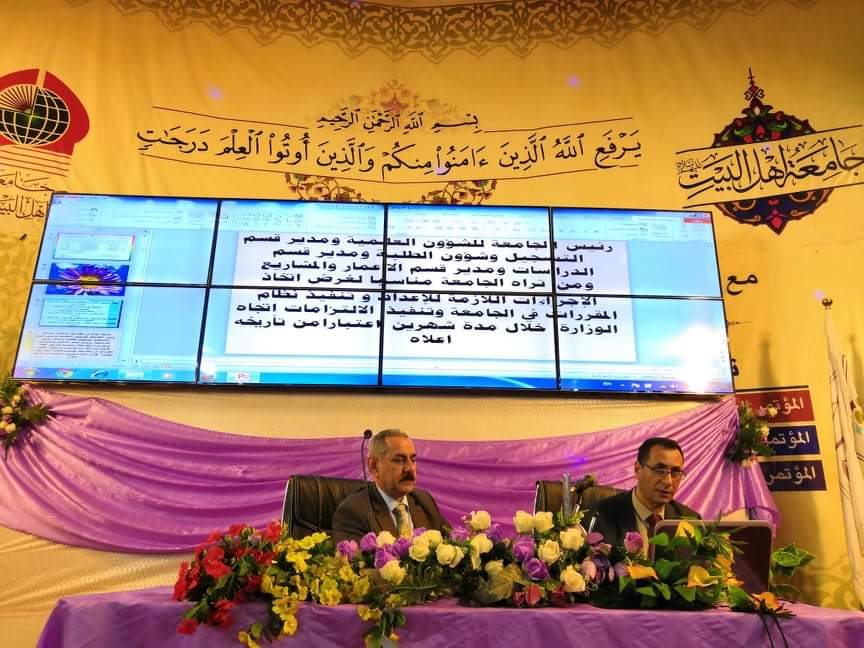 اقامت كلية القانون في جامعة أهل البيت عليهم السلام ندوة حوارية عن تنفيذ نظام المقررات للعام الدراسي 2019-2020 على قاعة الجامعة الكبرى وحاضر في الندوة الدكتور علي الفتلاوي التدريسي في جامعة كربلاء وقد حضر الندوة مؤسس جامعة أهل البيت عليهم السلام الدكتور محسن القزويني و عميد كلية القانون الدكتور حسن حنتوش و عميد كلية الصيدلة الدكتور علاء عبد العباس الجنابي و عميد كلية الاداب الدكتور باقر الزجاجي و عدد من اساتذة وموظفي الجامعة وكان محور الندوة حول تنفيذ نظام المقررات في الجامعات و الكليات الحكومية و الاهلية الذي من شأنه تطوير الواقع العلمي في العراق من خلال العمل على توفير كافة المتطلبات الخاصة بهذا النظام و في الختام فتح باب الحوار مع الدكتور الفتلاوي حول الية تنفيذ هذا النظام بعدها كان هناك تكريم للدكتور الفتلاوي من قبل رئيس جامعة أهل البيت عليهم السلام الدكتور عباس الحميري الذي قلده بوسام جامعة اهل البيت عليهم السلام بحضور مساعد رئيس الجامعة للشؤون العلمية الدكتور صاحب الاطرقجي و عميد كلية القانون الدكتور حسن حنتوش