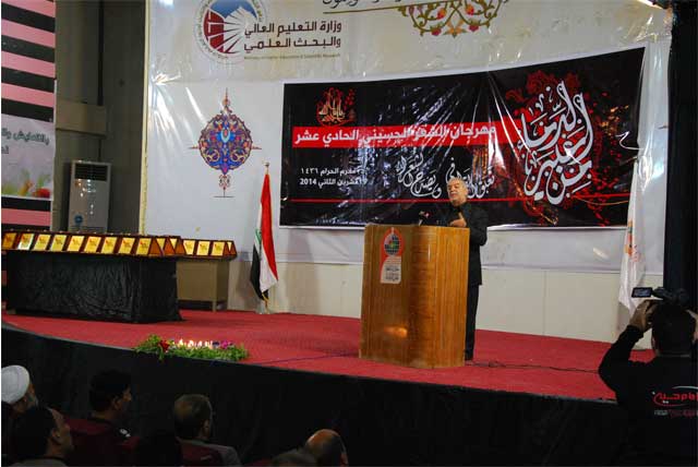 بعدها شارك الاستاذ الدكتور صادق عبد المطلب الموسوي رئيس جامعة اهل البيت بكلمة رحب من خلالها بالضيوف الكرام والسادة المسؤولين وممثلي المؤسسات الحكومية ومؤسسات المجتمع المدني واشاد فيها بضرورة وجوب احياء امر اهل البيت(عليهم السلام) من خلال اقامة المهرجانات والفعاليات التي هي جزء من الشعائر الحسينية وبعدها شارك بقصيدة شعرية وتلاهُ الشاعر رضا الخفاجي والشاعر حيدر السلامي و الشاعر عودة ضاحي التميمي والشاعر سلام البناي و والشاعر عادل الصويري والشاعر اسماعيل عزيز والشاعر سيد صادق جعفر القزويني والشاعر الدكتور محمد عبد فيحان ثم تم تكريم القنوات الفضائية والمؤسسات الاعلامية التي شاركت في نقل الشعائر الحسينية ووقفت وقفة الابطال المدافعين وعن مظلومية اهل البيت عليهم السلام ومتحدين قوى الضلالة والارهاب والتكفيريين وليثبتوا انتمائهم وولائهم لاهل البيت عليهم السلام وللعراق العظيم حيث تم تكريم القنوات التالية ووكالات الانباء بدرع المهرجان.