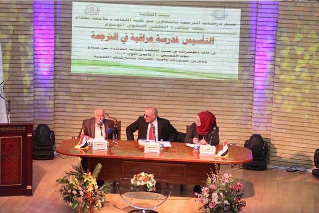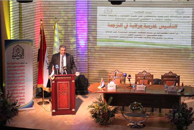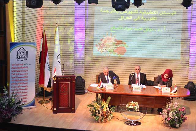 السيد رئيس جامعة أهل البيت عليهم السلام الأستاذ الدكتور صادق الموسوي يحضر افتتاح مؤتمر بيت الحكمة حول تأسيس مدرسة عراقية للترجمة وذلك صباح يوم 18/12 ويلتقي بالأساتذة والمترجمين وألقى كلمة حول أهمية فتح هذه المدرسة في الترجمة على الصعيد الوطني.