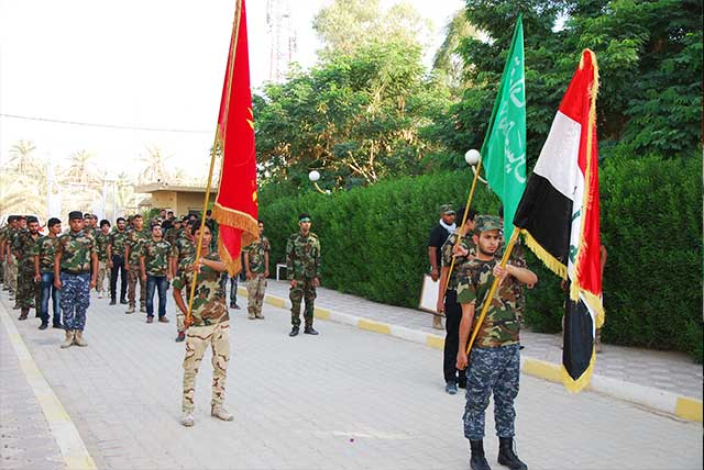 جامعة أهل البيت عليهم السلام تستعرض طلابها المقاتلين في دورة أنصار الحسين للحشد الشعبي