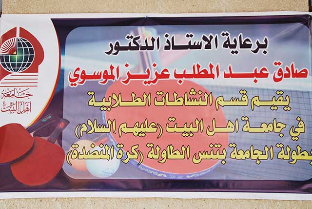 برعاية الأستاذ الدكتور صادق الموسوي رئيس الجامعة تم افتتاح بطولة الجامعة بتنس الطاولة (كرة المنضدة) التي ينظمها قسم النشاطات الطلابية في الجامعة بمشاركة عدد من الأساتذة والطلبة.