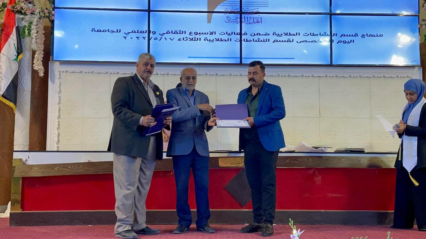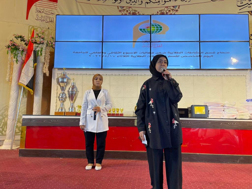 ضمن فعاليات الأسبوع الثقافي والعلمي لجامعة اهل البيت عليهم السلام أقيم مهرجان قسم النشاطات الطلابية يوم الثلاثاء المصادف ٢٠٢٢/٥/١٧