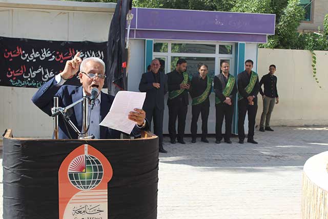 وبهذه المناسبة نظمت الجامعة احتفالاً تضمن تلاوة من آيات القرآن الكريم والوقوف مع قراءة سورة الفاتحة على أرواح شهداء المناصرين للإمام الحسين عليه السلام ثم أتلى السيد رئيس الجامعة ا.د. صادق الموسوي كلمة بالمناسبة وكملة الأمانة العامة للعتبة الحسينية والقيت عدد من القصائد الشعرية من قبل ا.د. منصور مذكور عميد كلية العلوم الاسلامية والدكتور محمد عبد فيحان التدريسي في قسم الصحافة والسيد صادق القزويني مدير قسم الاعلام والعلاقات العامة.