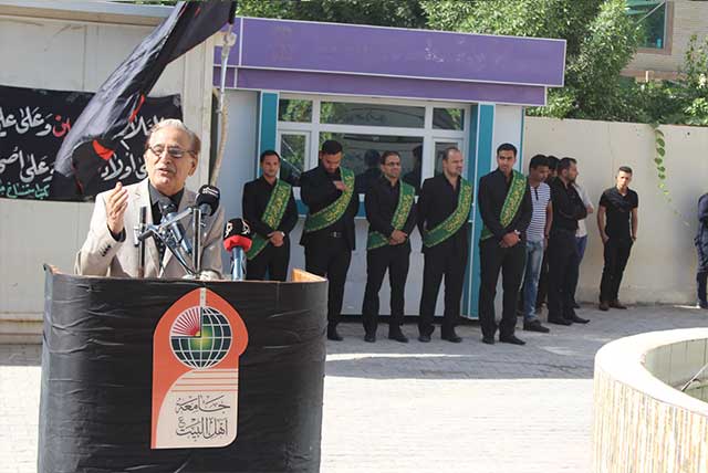 انطلاقاً من مبدأ التقارب والوحدة تحت راية الحق المبين أجريت صباح يوم الأربعاء الثالث من شهر محرم الحرام رفع راية الامام الحسين على مبنى جامعة أهل البيت عليهم السلام.