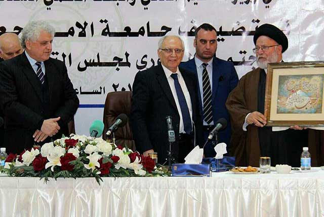 استضاف السيد حسين بركة الشامي مؤسس جامعة الامام الصادق عليه السلام الاستاذ الدكتور صادق الموسوي رئيس جامعة اهل البيت عليهم السلام و ذلك في المؤتمر الخاص بمجلس التعليم الجامعي الاهلي الذي اقيم في رحاب جامعة الامام الصادق عليه السلام