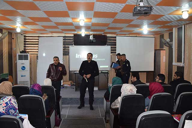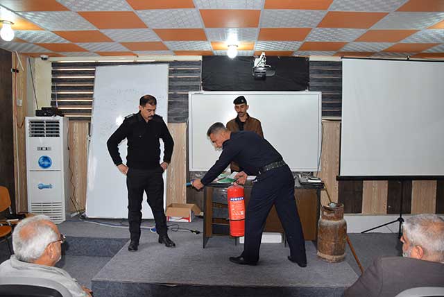 اقامة مديرية الدفاع المدني مركز الحر دورة في طرق الوقاية و السلامة لطلبة كلية الصيدلة في جامعة اهل البيت عليهم السلام . هذا و قد كان في الوفد كل من السيد النقيب ميثم علي حسين و السيد النقيب غيث محمود محسن و ش.اول منتظر علاوي حيث قدموا للطلبة العديد من الارشادات و التعليمات التي يجب العمل بها في الحياة اليومية حيث وضحوا للطلبة طرق الوقاية من الحرائق في دروس نظرية و عملية هذا و قد رافق الوفد السيد مدير قسم النشاطات الطلابية الاستاذ حيدر المعمار الذي كان له الدور الكبير في التنسيق مع المديرية و الاتفاق على اقامة هذه الدورة