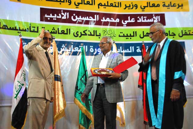حضر معالي وزير التعليم العالي والبحث العلمي الاحتفال الذي أقامته جامعة اهل البيت عليهم السلام صباح يوم السبت 26/10/2013 بمناسبة مرور عشر سنوات على تأسيس الجامعة وتخريج الدورة السابعة تحت شعار دورة المحبة والتعايش.