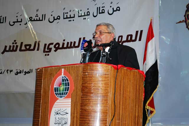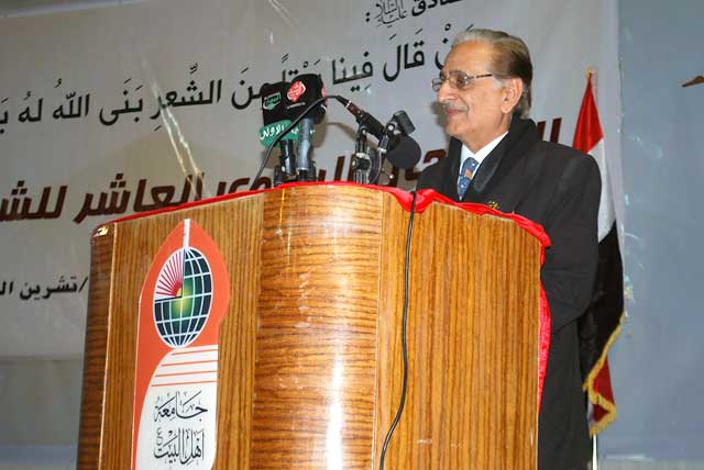 أقامت جامعة أهل البيت عليهم السلام مهرجانها السنوي العاشر للقصيدة الحسينية حيث افتتح المهرجان بتلاوة آيات من الذكر الحكيم، بعدها افتتح المهرجان الأستاذ الدكتور صادق عبدالمطلب عزيز الموسوي رئيس الجامعة بأبيات من الشعر الحسيني وكلمات رحب خلالها بالشعراء والأدباء والوافدين للمشاركة في هذه الفعالية التي دأبت جامعة اهل البيت عليهم السلام على إقامتها سنوياً تخليداً لذكرى ملحمة الطف وتجسيداً للحب الأزلي وجذوة الظلامة في قلوب عشاق ومحبي الإمام أبي عبد الله الحسين عليه السلام.