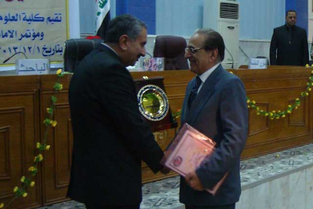 بدعوة من كلية العلوم الإسلامية في جامعة كربلاء الأستاذ الدكتور صادق الموسوي رئيس جامعة أهل البيت عليهم السلام يحضر المؤتمر الحسيني الدولي الثالث ويستلم درع المؤتمر من السيد رئيس جامعة كربلاء.