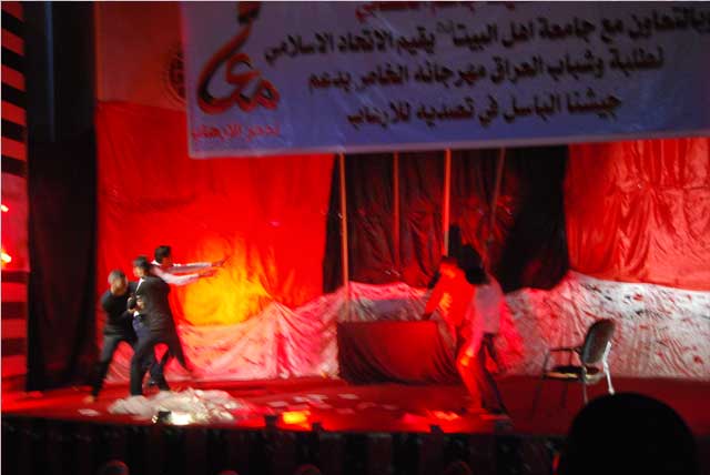 أقامت جامعة أهل البيت عليهم السلام وبالتنسيق مع الاتحاد الإسلامي لطلبة وشباب العراق مهرجانا ثقافيا لدعم الجيش العراقي والقوات التي تحارب الإرهاب تعبيرا عن التلاحم والوقوف صفا واحدا ضد قوى الضلالة والظلام ورفع شعار العراق فوق الجميع.