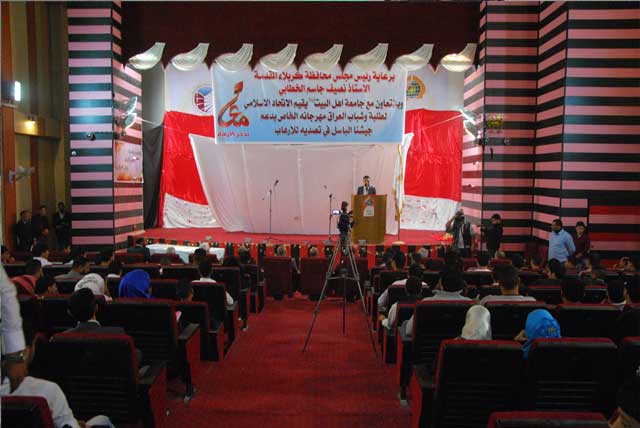 احتفالية لدعم الجيش العراقي الباسل في جامعة أهل البيت عليهم السلام بحضور رئيس مجلس المحافظة
