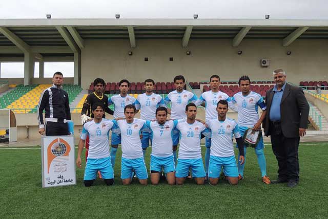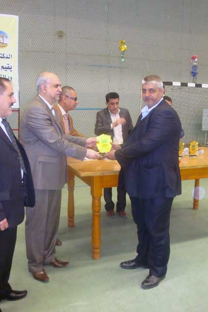 تثمينا لمشاركة منتخب جامعة أهل البيت عليهم السلام في بطولة المنطقة الجنوبية لجامعات العراق بكرة القدم سلم رئيس جامعة ميسان د. علي عبد العزيز الشاوي درعآ تذكارياً إلى رئيس الوفد الأستاذ حيدر المعمار .