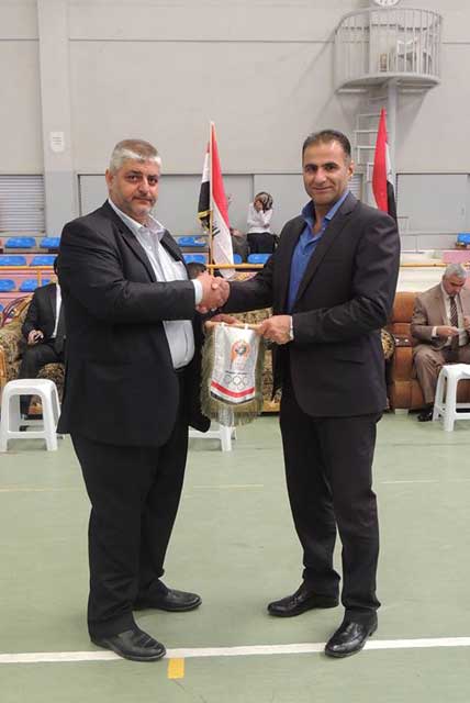 رئيس جامعة ميسان يقدم درع المشاركة في البطولة لرئيس وفد الجامعة