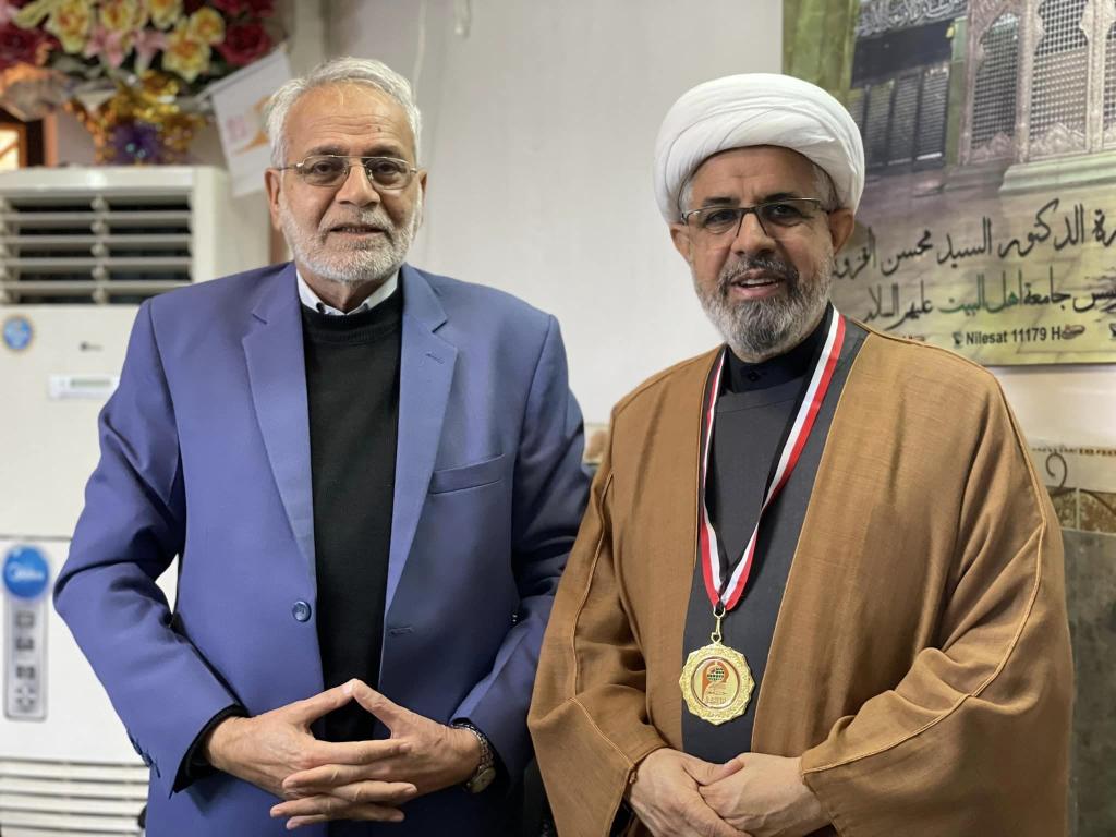 وفي نهاية الزيارة قدم مؤسس الجامعة وسام جامعة اهل البيت للضيف تقديرا للجهود التي بذلها في مجال التنمية البشرية في دولة البحرين.