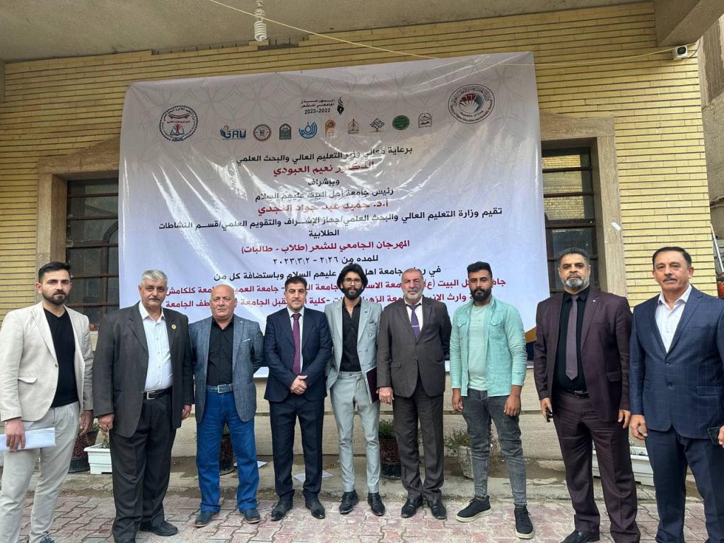 عقد المؤتمر الفني للمهرجان الجامعي للشعر في رحاب جامعة اهل البيت عليهم السلام وباستضافة كريمه من قبل جامعة وارث الأنبياء وجامعة الكفيل وجامعة العميد وجامعة الزهراء للبنات وجامعة كلكامش والجامعه الاسلاميه وكلية المستقبل الجامعه وكلية الطف الجامعه بالاضافه الى جامعة اهل البيت عليهم السلام يوم الأحد المصادف ٢٠٢٣/٢/٢٦ بحضور أ.د.فراس الكناني مسؤول اللجنه الفنيه والثقافية في قسم النشاطات الطلابية في جهاز الإشراف والتقويم العلمي في وزارة التعليم العالي والبحث العلمي واللجنة الثقافيه للمهرجان برئاسة أ.د.يونس عباس حسين وعضوية كل من ا.د.سحاب محمد رشم و ا.د.رعد احمد علي و ا.د.جبار محاط حسن وتم اللقاء بحضور اللجنه الوزاريه في قسم النشاطات الطلابية في جهاز الإشراف والتقويم العلمي و ممثلي ٥٣ جامعه وكليه حكوميه واهليه علما بأن المهرجان يعقد للمده من ٢/٢٦ - ٢٠٢٣/٣/٢ علما بأن المهرجان يمثل مسابقة وزاريه تقيمها وزارة التعليم العالي والبحث العلمي /جهاز الإشراف والتقويم العلمي/قسم النشاطات الطلابية