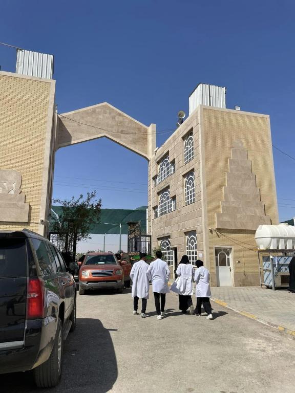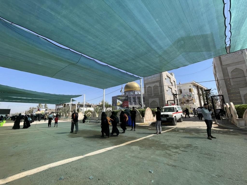 جانب مصور للاستعدادات السنوية لموكب جامعة اهل البيت عليهم السلام في موقع كلية التقنيات الطبية والصحية طريق كربلاء-نجف عمود 833..