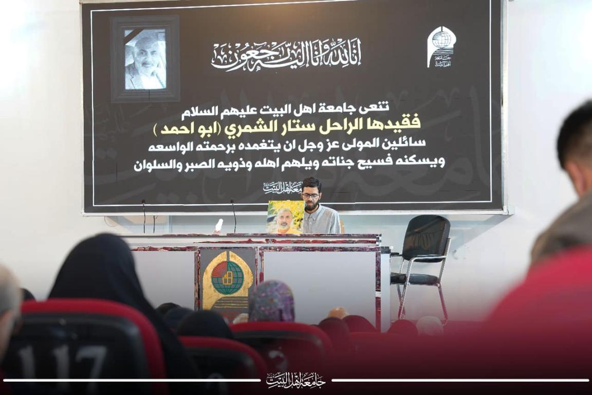 اقامت جامعة اهل البيت عليهم السلام حفلا تابينيا على روح المرحوم الاستاذ ستار ابو شكير الشمري على قاعة طب الاسنان ، وابتدا الحفل بكلمة القاها الاستاذ صادق القزويني مدير اعلام الجامعة استذكر فيها سيرة المرحوم حيث كان من اوائل العاملين في الجامعة ومنذ تأسيسها ،وكان حاضرا في كل الانشطة والفعاليات التي اقامتها الجامعة من ندوات ومؤتمرات ومواكب حسينية ،وعند رحيله ترك اثرا كبيرا في قلوب زملائه ومحبيه ،تغمده الله بواسع رحمته واسكنه فسيح جناته،،بعدها قرا المقرا الطالب مصطفى جار الله من كلية طب الاسنان عددا من الايات البينات من الذكر الحكيم ،ثم تلاه السيد علي القزويني ليتلو ايضا عدة ايات من الذكر الحكيم على روح المرحوم ، وقد حضر الحفل السيد رئيس جامعة اهل البيت ع الاستاذ الدكتور حميد النجدي والسيد مؤسس الجامعة الدكتور محسن القزويني والاستاذ الدكتور باسم العقابي مساعد رئيس الجامعة للشؤون العلمية والسادة عمداء واساتذة الكليات الافاضل وجمع كبير من موظفي وطلبة الجامعة ، ومن ذوي الفقيد حضر ولداه حيث قدما الشكر للجامعة على اقامتها هاذا الحفل التابيني