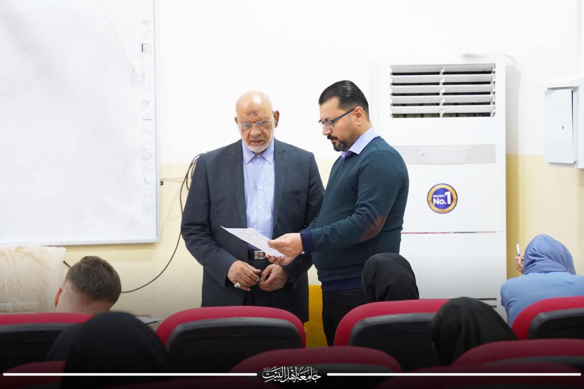 تفقد رئيس جامعة اهل البيت عليهم السلام الدكتور النجدي الامتحانات الخاصة بكلية الصيدلة بتاريخ 26-3-2024 حيث اكد على مراعاة الأجواء الامتحانية المناسبة لأبنائنا الطلبة وتوفير جميع سبل الراحة لاداء امتحاناتهم