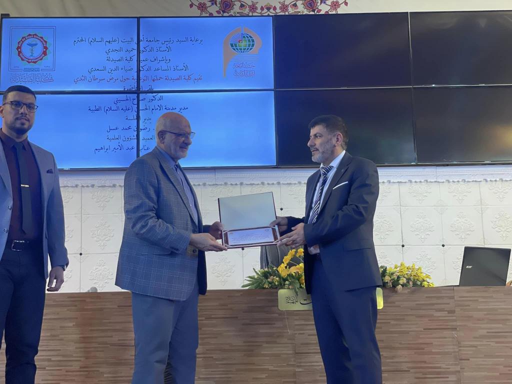 أقامت كل الصيدلية في يوم الاربعاء المصادف٢٠٢٢/١١/٣٠ حملة توعوية حول مرض سرطان الثدي حيث ألقى المحاضرة مدير مدينة الامام الحسين (عليه السلام) الطبية الدكتور صباح كريم الحسيني المحترم