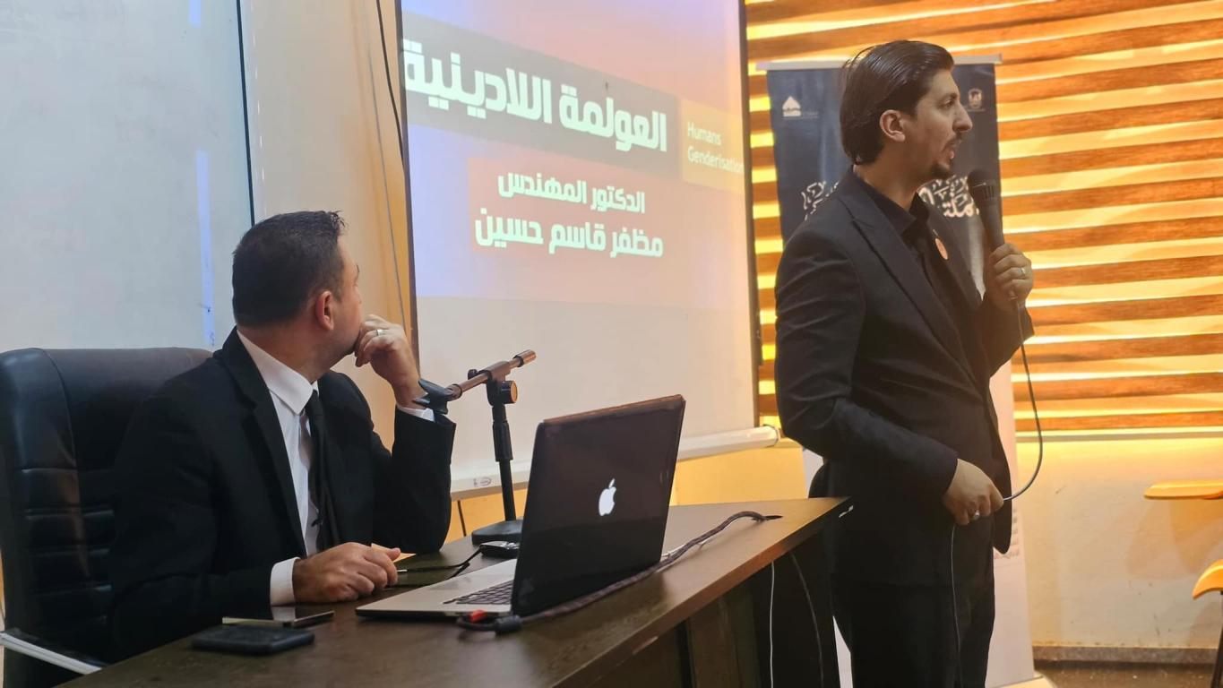 بحضور الاستاذ الدكتور محسن القزويني مؤسس جامعة اهل البيت عليهم السلام والأستاذ الدكتور ضياء الدين محمد علي عميد كلية الصيدلة و بالتعاون مع قسم تطوير الموارد البشرية في العتبة الحسينية المقدسة تم اقامة الندوة الموسومة ( العولمة اللادينية ) والتي تتناول موضوع جندرة المجتمع وادار محاور الندوة القاءً ونقاشاً الدكتور مظفر قاسم حسين المقيم في المملكة المتحدة والذي اكد من خلال محاضرته على خطورة الجندرة على فئة الشباب وعلى ضرورة محاربة هذه الأفكار المنحرفة من خلال تثقيف الشباب وتسليحهم بالمعرفة التي تؤدي بالتالي إلى القضاء على هذه الأفكار ..