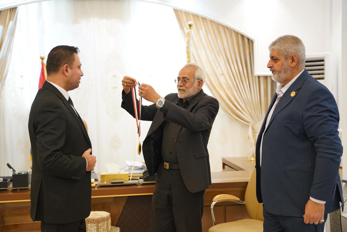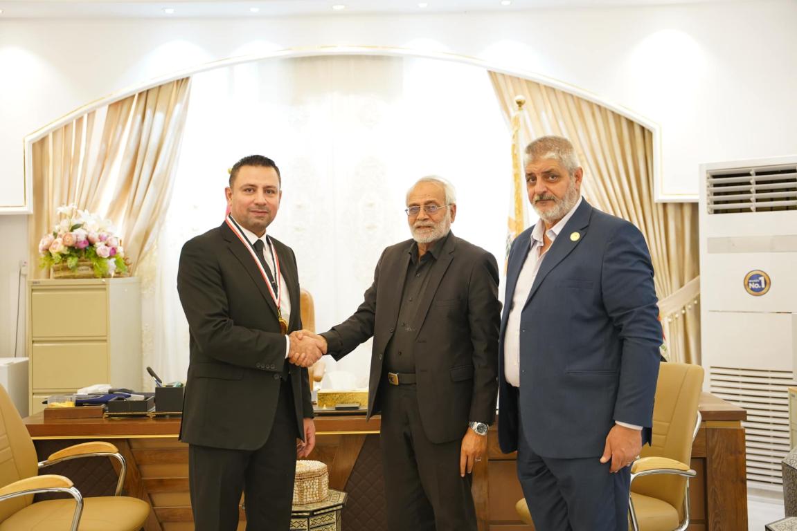 وفي الختام قلد الدكتور محسن القزويني وسام الإبداع لجامعة اهل البيت عليهم السلام للدكتور مظفر قاسم حسين تقديرا لجهوده المتميزة في إدارة محاور الندوة ..